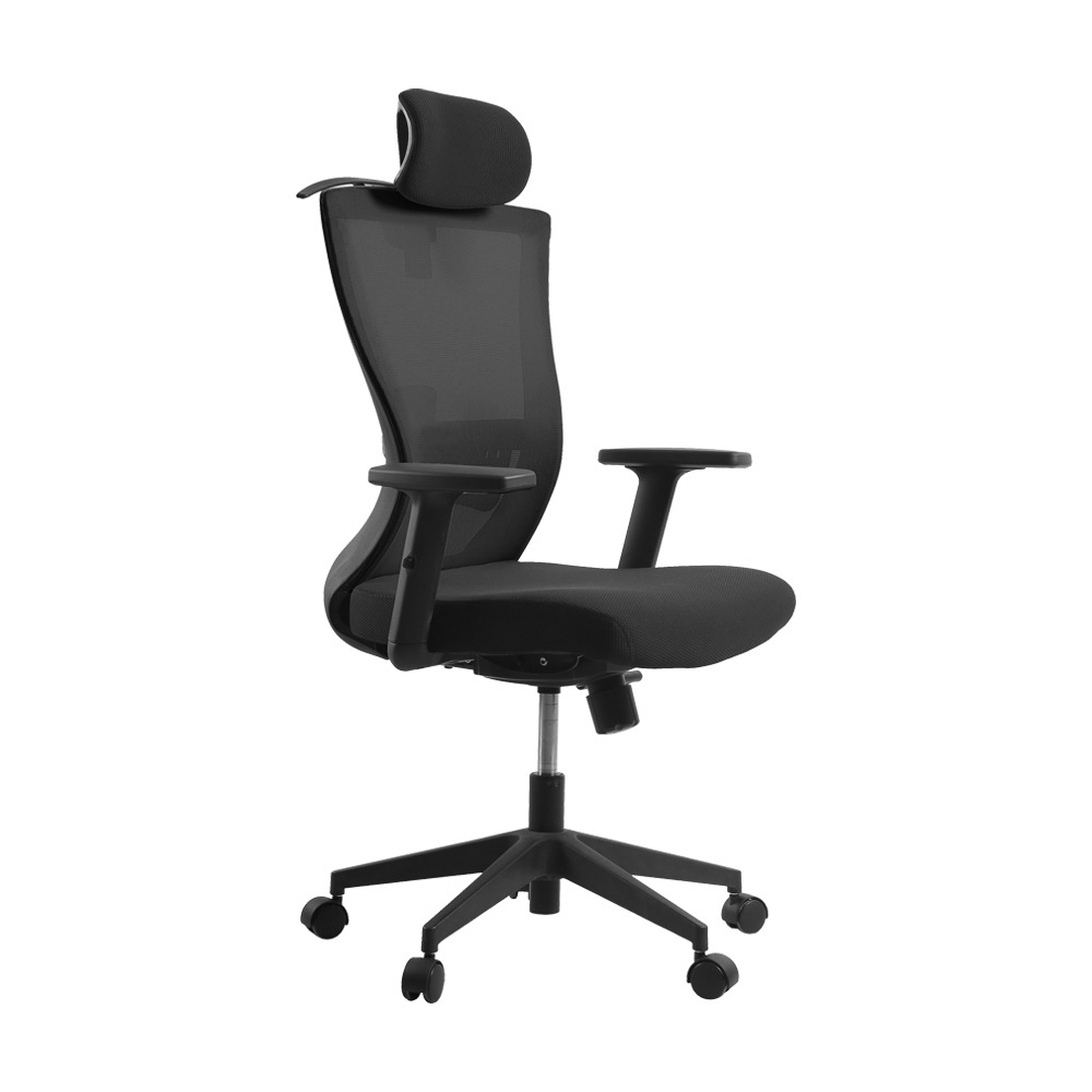 כסא מנהלים גבוה עם משענת ראש, גב רשת, ידיות מתכווננות, מנגנון נדנוד