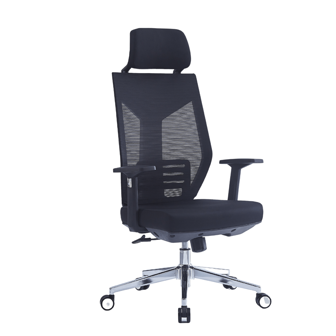 כסא מנהלים מעוצב גבוה, ריפוד בד-רשת, משענת ראש, מנגנון נדנוד, ידיות קבועות