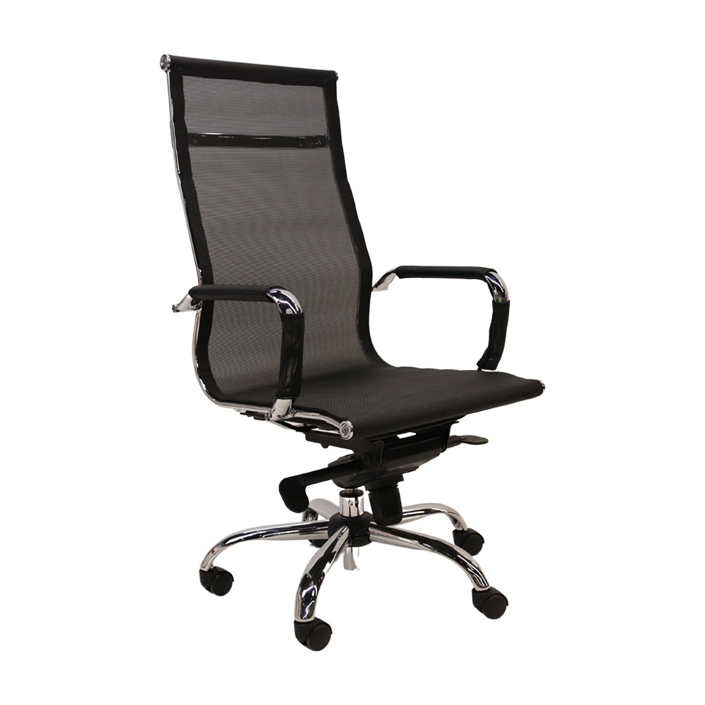 כסא מנהלים גבוה בעיצוב היי-טק יוקרתי, ריפוד בד-רשת, מנגנון סינכרוני, ידיות קבועות