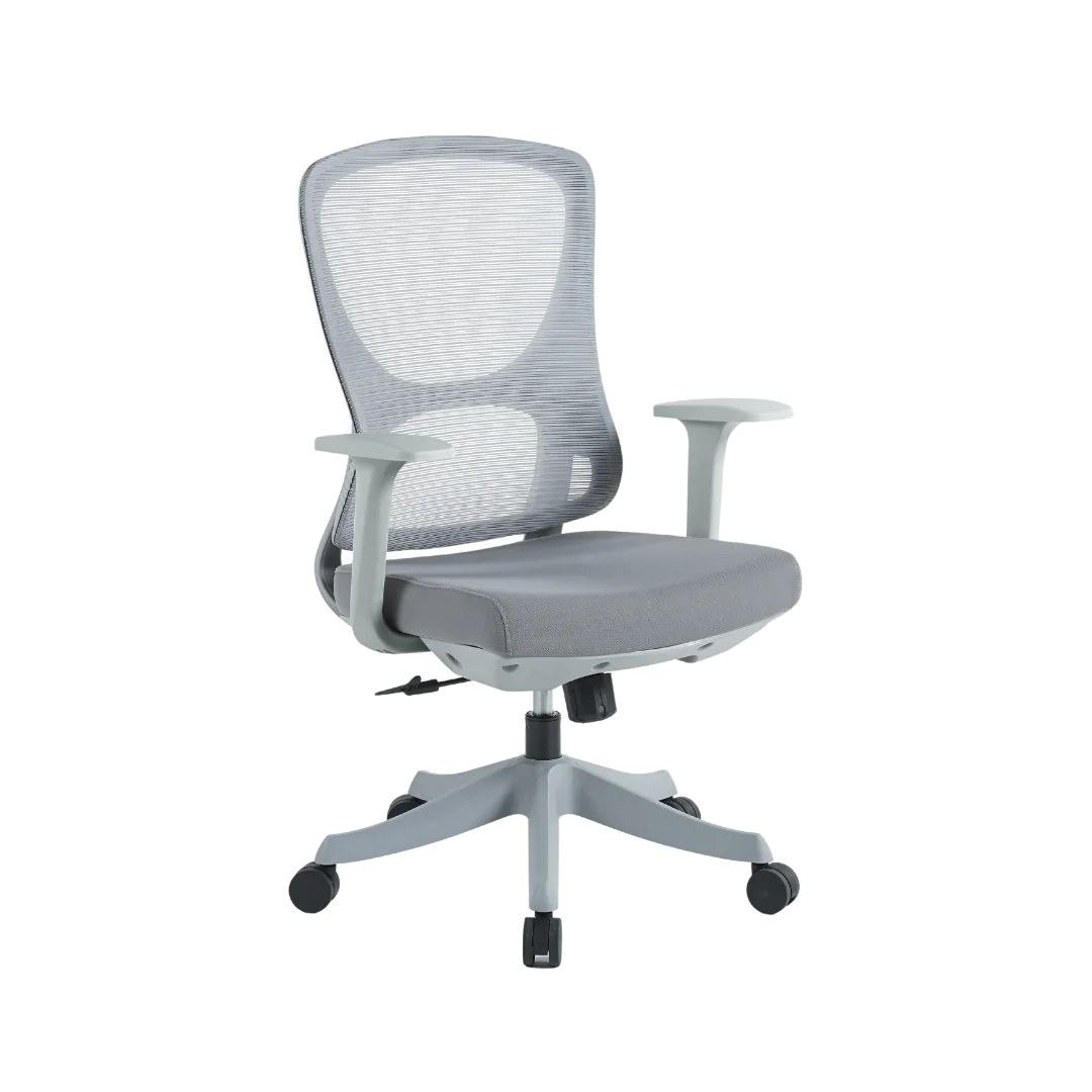 כסא עבודה נמוך גב-רשת, מושב-בד, מנגנון נדנוד, ידיות פליפ
