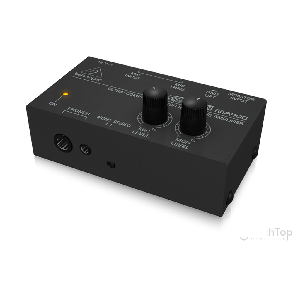 ה-Behringer Micromon MA400 הוא מגבר מוניטור אישי קומפקטי ורב-תכליתי המעניק לנגנים וזמרים שליטה מלאה על הסאונד האישי שלהם בביצועים חיים או באולפן. המכשיר מאפשר לשלב בין סיגנל ישיר של מיקרופון לבין סיגנל מוניטור המגיע מהמיקסר המרכזי, כאשר לכל ערוץ קיים בורר עוצמה נפרד המאפשר יצירת מיקס אישי ומאוזן באוזניות. הוא מצויד בכניסת XLR למיקרופון עם יציאת Thru המאפשרת להעביר את האות למיקסר ללא הפרעה, כניסת Monitor בחיבור PL, ושתי יציאות אוזניות (PL ו-3.5 ממ) המתאימות לכל סוגי האוזניות. בזכות המבנה העמיד והקומפקטי שלו, ה-MA400 הוא פתרון אידיאלי עבור אמנים הזקוקים לניטור מדויק ואישי מבלי להיות תלויים במיקס הכללי של הבמה או האולפן, והוא כולל כפתור Ground Lift למניעת רעשי רקע והפרעות חשמליות.